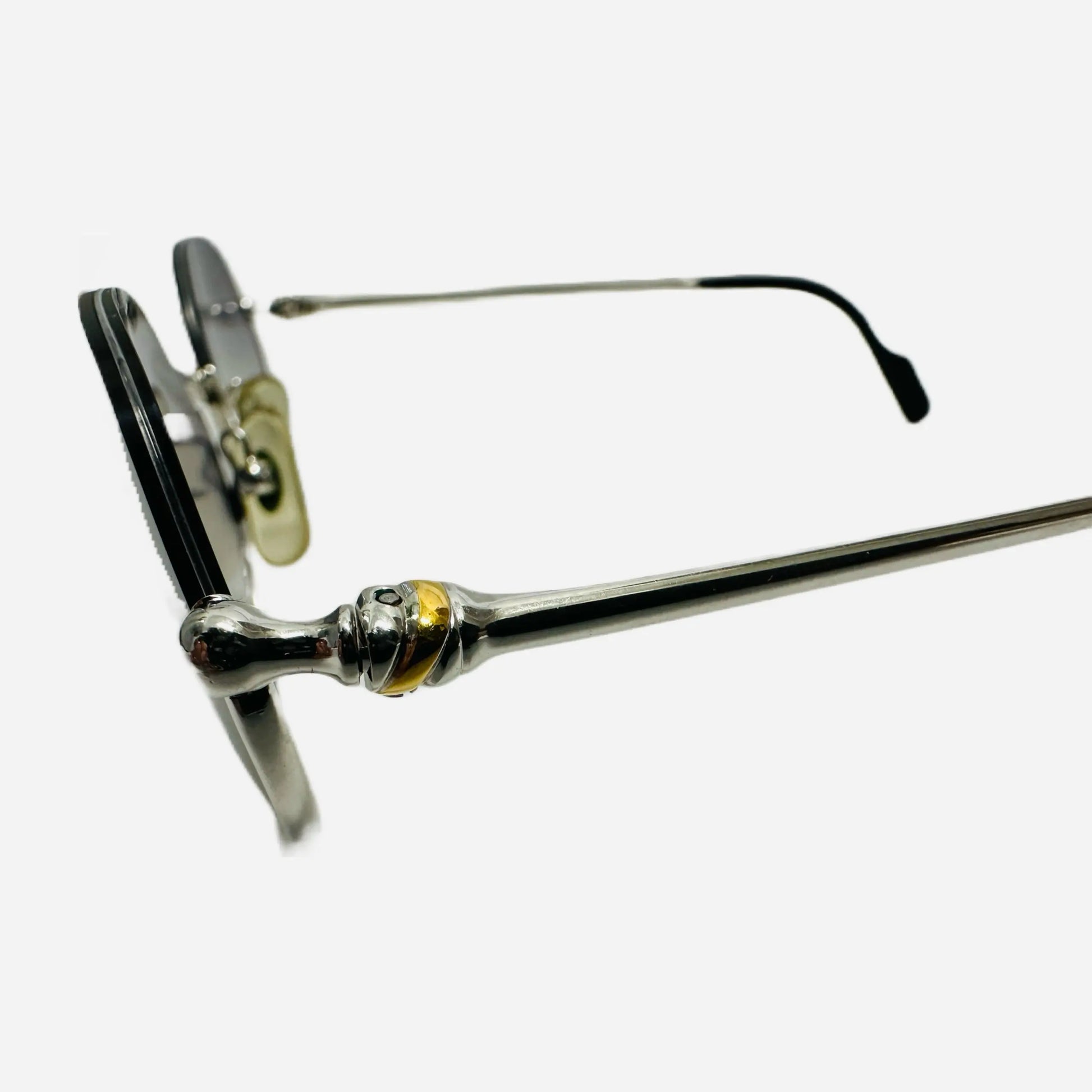 Das Hauptmerkmal der Vintage Cartier Demi Lune Brille ist das edle Platin-Finish, das ihm einen luxuriösen und dennoch dezenten Glanz verleiht. Dieses Metall ist nicht nur für seine Langlebigkeit und Beständigkeit gegen Abnutzung und Korrosion bekannt, sondern auch für seine schicke Ausstrahlung.