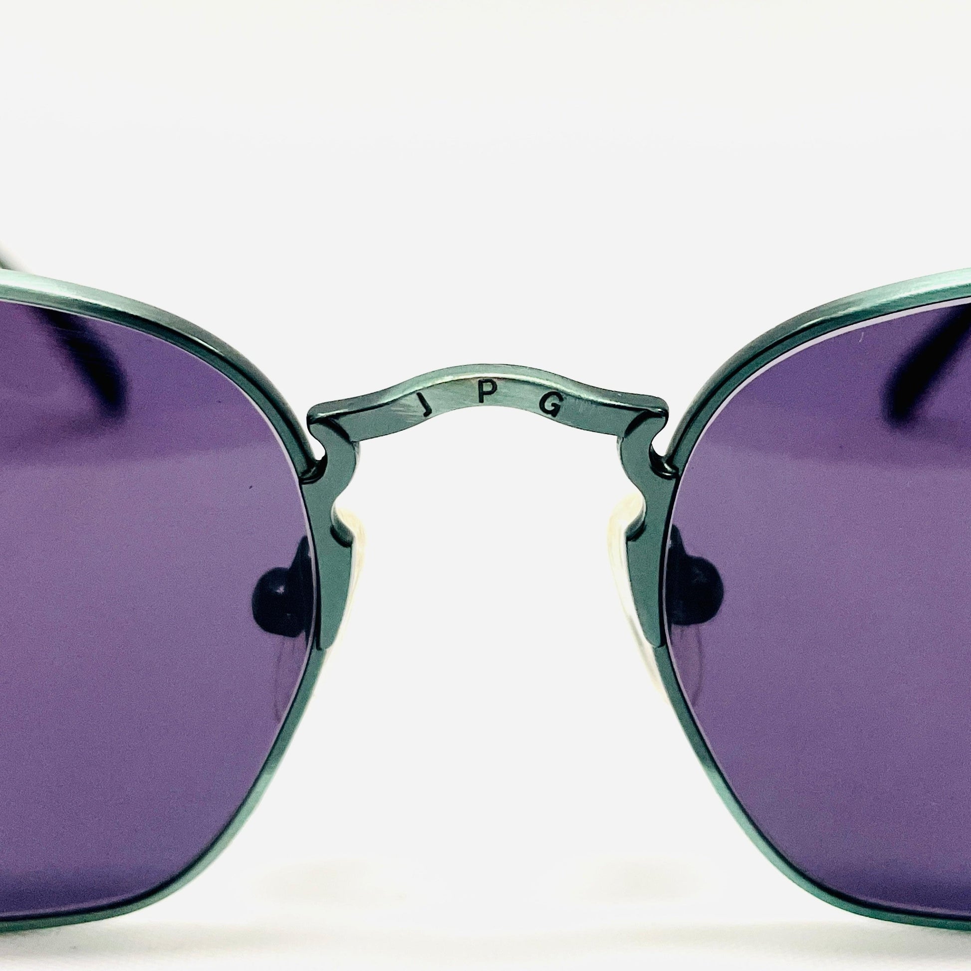 Inspiriert von der Steampunk-Ära, ist diese Sonnenbrille von Jean Paul Gaultier ein Meisterwerk des Designs. Kühne, industrielle Elemente werden mit futuristischer Technologie und Stil vereint, um eine Sonnenbrille zu schaffen, die sowohl robust als auch elegant ist.
