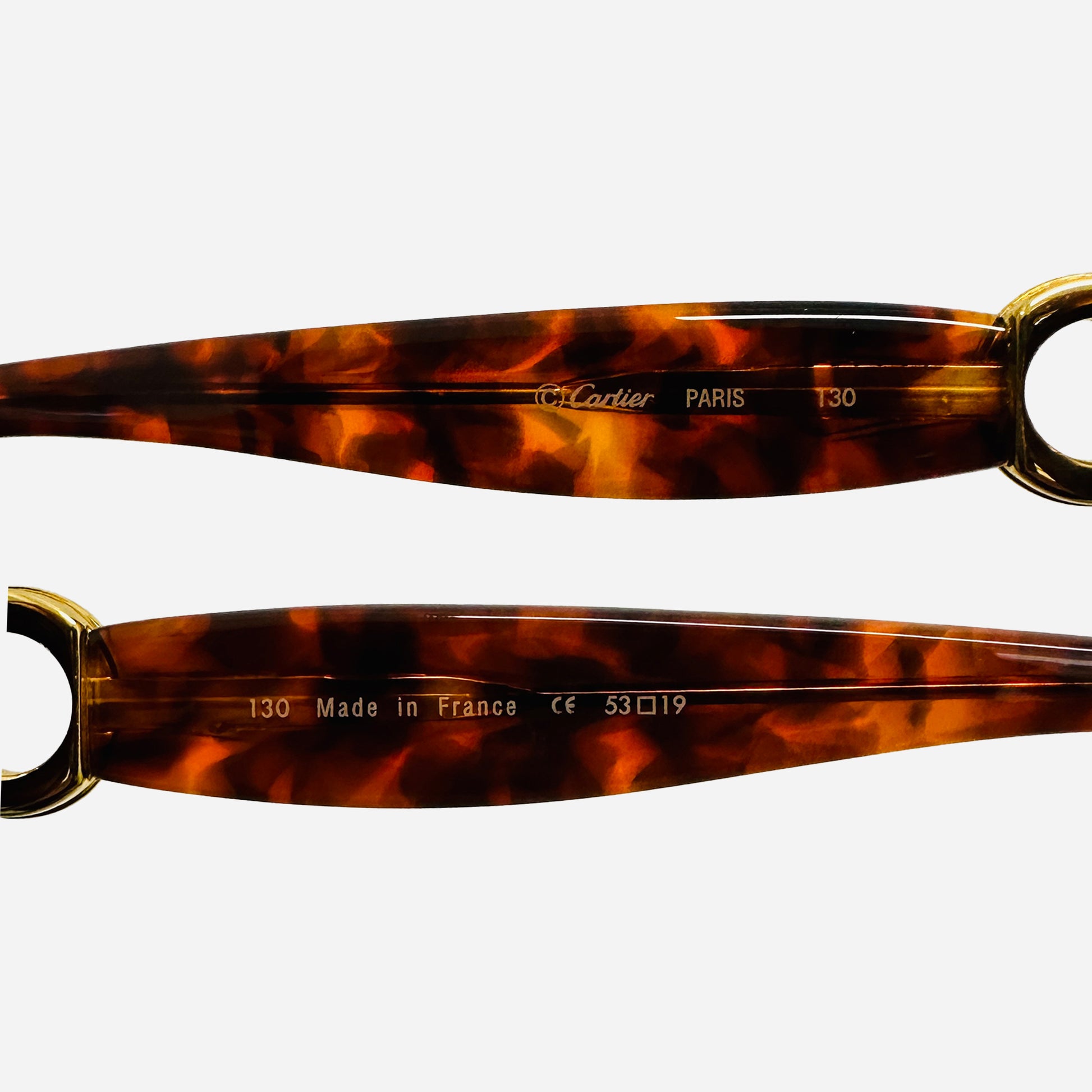 The vintage Cartier sunglasses are characterized by their acetate frame in a classic tortoise pattern. This design is not only timeless but also versatile as it suits every occasion and outfit.